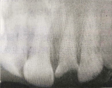 患者,女性,26歲,要求修復(fù)左側(cè)上前牙。自述3年前左側(cè)上前牙牙齒開始發(fā)黑,且出現(xiàn)冷熱疼痛癥狀,但并未理睬。近4個(gè)月來牙齒開始?jí)K狀脫落,現(xiàn)僅剩余牙根,且牙床經(jīng)常腫痛,故來修復(fù)科就診。