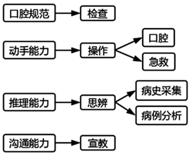考站名稱 題量 分值(分) 時(shí)間(分鐘) 考試形式考試要求 第一站 口腔檢查 2 24 20 操作洗手和戴手套,黏膜消毒、一般檢查、特殊檢查,并記錄檢查結(jié)果 第二站 口腔操作 2~3 40 36 操作仿頭模、模具或離體牙上進(jìn)行操作,或?qū)σ芽伎忌M(jìn)行操作。 第三站 急救技術(shù) 2 10 6 操作模擬人上操作或?qū)σ芽伎忌M(jìn)行檢查。 第四站 病史采集 1 5 5 口述同一房間、同一臺(tái)考生機(jī)進(jìn)行。計(jì)算機(jī)呈現(xiàn)試題,考生口述作答 第五站 病例分析 1 18 10 口述 第六站 健康教育 1 3 3 操作口述考生在模具上操作,邊操作邊口述。 合計(jì) 9~10 100 80 一規(guī)范 三能力