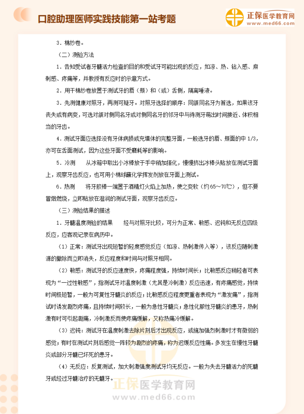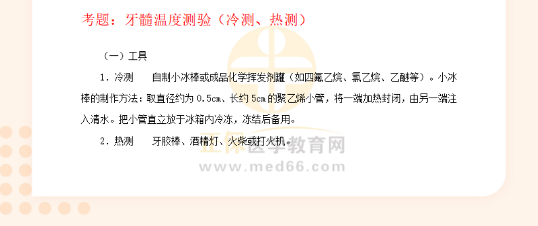 口腔助理醫(yī)師實(shí)踐技能考試口腔檢查重點(diǎn):牙髓溫度測(cè)驗(yàn)(冷測(cè)、熱測(cè))