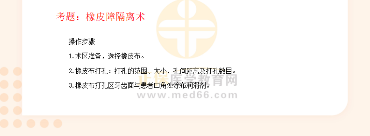 醫(yī)學教育網(wǎng)編輯整理分享“口腔助理醫(yī)師資格實踐技能考試【口腔操作】習題:橡皮障隔離術”如下,希望可以幫助大家更好地掌握相關重點!
