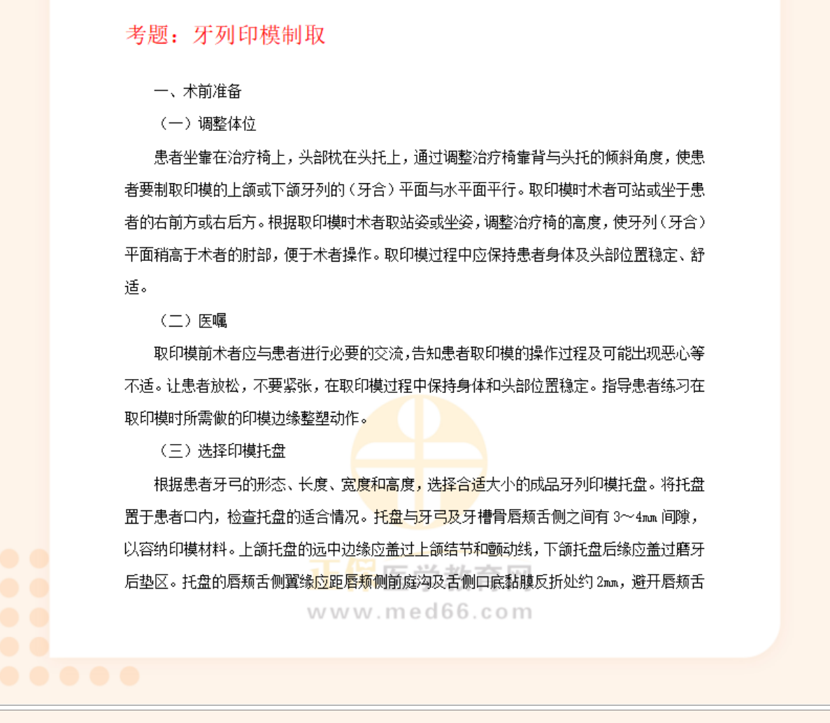 牙列印模制取-口腔助理醫(yī)師實(shí)踐技能考試口腔操作重點(diǎn)歸納