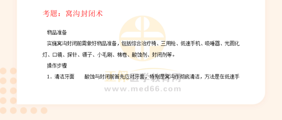 醫(yī)學(xué)教育網(wǎng)編輯整理分享“口腔執(zhí)業(yè)助理醫(yī)師技能考試第二站??疾僮鳎焊C溝封閉術(shù)”如下,希望可以幫助大家更好地掌握相關(guān)重點!