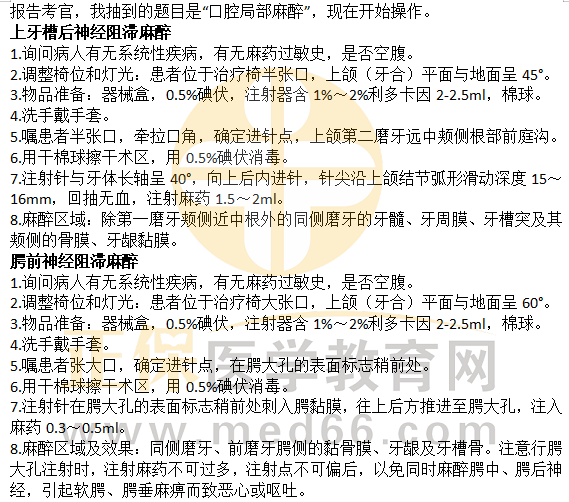 為幫助口腔助理醫(yī)師考生掌握實踐技能知識點,醫(yī)學教育網小編整理了“口腔局部麻醉——2023口腔助理醫(yī)師技能實操口述要領”相關內容: