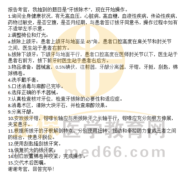 牙拔除術(shù)——2023口腔助理醫(yī)師技能實(shí)操口述要領(lǐng)