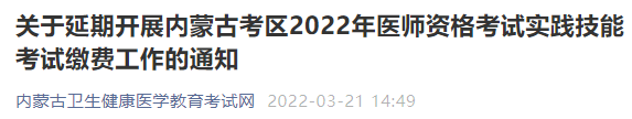 內(nèi)蒙古2022年醫(yī)師資格考試原定實(shí)踐技能繳費(fèi)時(shí)間延期!