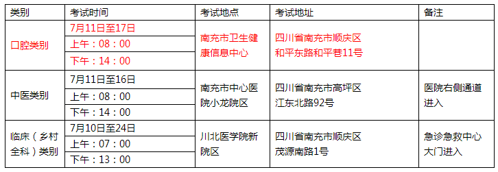 南充考點2020年口腔助理醫(yī)師實踐技能考試地點/考試時間/考生須知