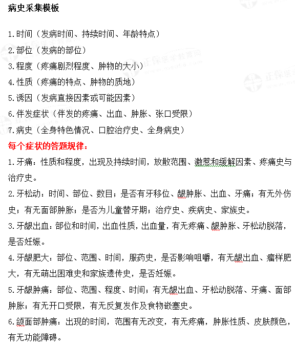 2021年口腔醫(yī)師實踐技能考試病史采集答題關鍵/模板