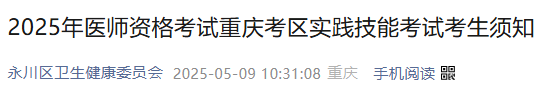 為確保2025年醫(yī)師資格考試重慶考區(qū)實踐技能考試順利實施,現將考生須知告知如下,請相互轉告且遵守執(zhí)行。