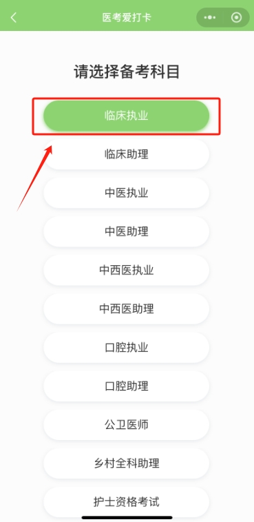 2024年醫(yī)師資格考試必備刷題神器來(lái)啦!各位考生看過(guò)來(lái),微信搜索“醫(yī)考愛(ài)打卡”小程序,選擇考試類(lèi)別后,開(kāi)啟免費(fèi)刷題打卡啦!本次針對(duì)臨床/口腔/公衛(wèi)類(lèi)別醫(yī)師第一期打卡開(kāi)通,快來(lái)參與打卡!