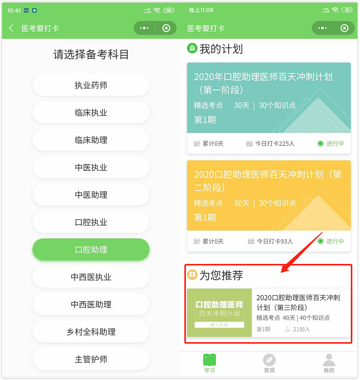 - · 精選熱門考點(diǎn)搭配專項(xiàng)試題,2021口腔助理醫(yī)師醫(yī)考愛打卡第3階段開通!