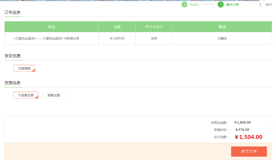 第三步:在訂單頁確認(rèn)無誤后,點擊“提交訂單”;