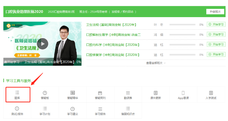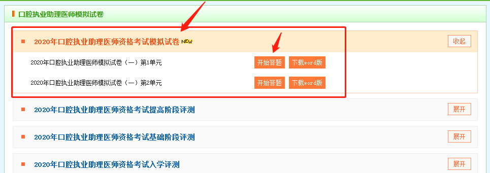 第二步:選課2020年口腔執(zhí)業(yè)助理醫(yī)師模擬試卷,點(diǎn)開即可做題啦!