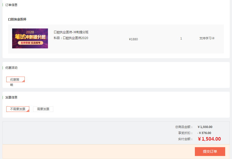 第二步:在訂單頁(yè)確認(rèn)無誤后,點(diǎn)擊“提交訂單”;
