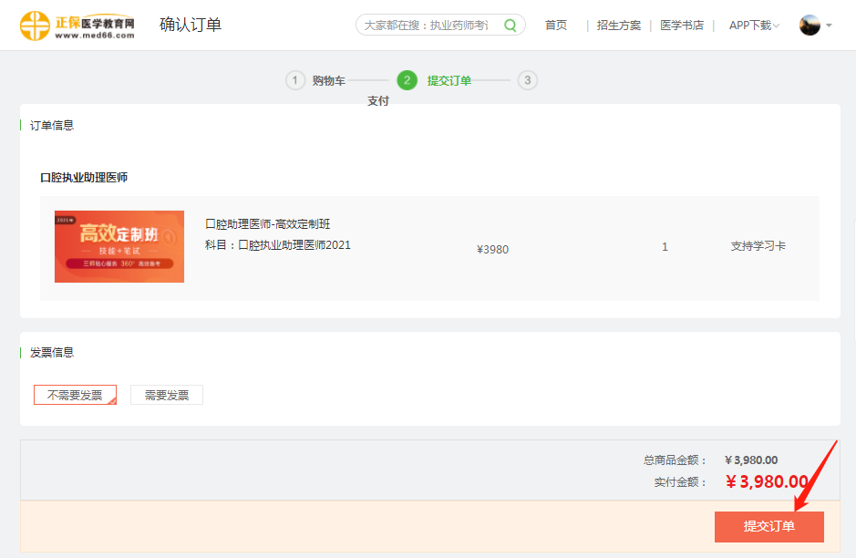 第二步:在訂單頁確認無誤后,點擊“提交訂單”;
