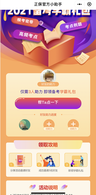 2.邀請好友,讓其幫忙點(diǎn)擊“幫ta點(diǎn)一下”,即可完成助力,3人成功助力后即可獲得獎勵。