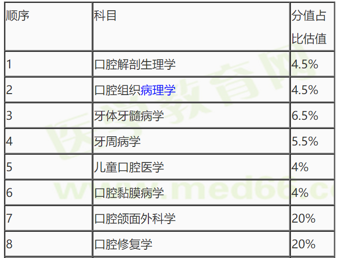 口腔助理醫(yī)師2021年筆試科目分值占比劃分及科目單元分配情況