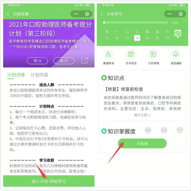 打卡第三步:加入計劃-開始做題: