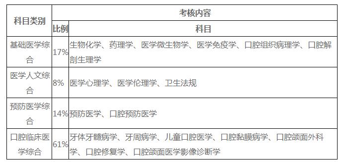 口腔內(nèi)科學(xué),約120分;口腔頜面外科學(xué)(含醫(yī)學(xué)影像學(xué)),約120分;口腔修復(fù)學(xué),約120分??谇活A(yù)防醫(yī)學(xué),約48分。口腔組織病理學(xué)、口腔解剖生理學(xué)各占約33分。