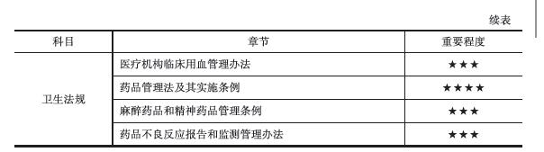 其他的章節(jié)比如:醫(yī)療機(jī)構(gòu)管理條例及其實施細(xì)則;母嬰保健及其實施方法;艾滋病防治條例;突發(fā)公共衛(wèi)生事件應(yīng)急條例;藥品管理法;麻醉藥品和精神藥品管理條例;處方管理方法;獻(xiàn)血法;侵權(quán)責(zé)任法;放射診療管理規(guī)定;醫(yī)療機(jī)構(gòu)臨床用血管理及精神衛(wèi)生法,需要了解。