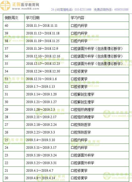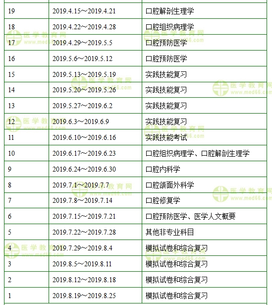 2019年口腔執(zhí)業(yè)助理醫(yī)師復(fù)習(xí)進(jìn)度表完整版