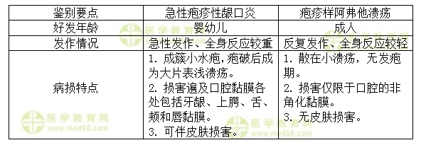 急性皰疹性齦口炎與皰疹樣阿弗他潰瘍鑒別