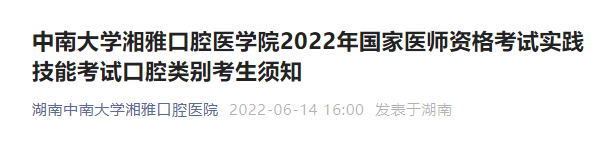 中南大學(xué)湘雅口腔醫(yī)學(xué)院2022年口腔助理醫(yī)師實(shí)踐技能考試考生須知發(fā)布!