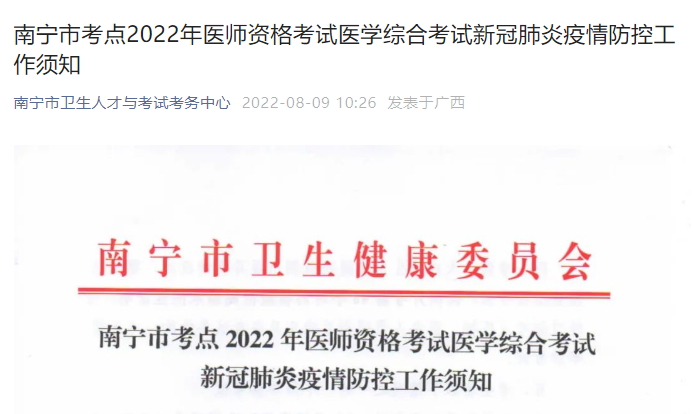 廣西考區(qū)南寧市考點2022年口腔助理醫(yī)師醫(yī)學(xué)綜合考試新冠肺炎疫情防控工作須知