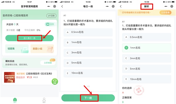 您可以根據(jù)刷題時(shí)間安排,可以在等飯或者地鐵上打開每日一練,或者在睡前打開錯(cuò)題集再來一遍查漏補(bǔ)缺: