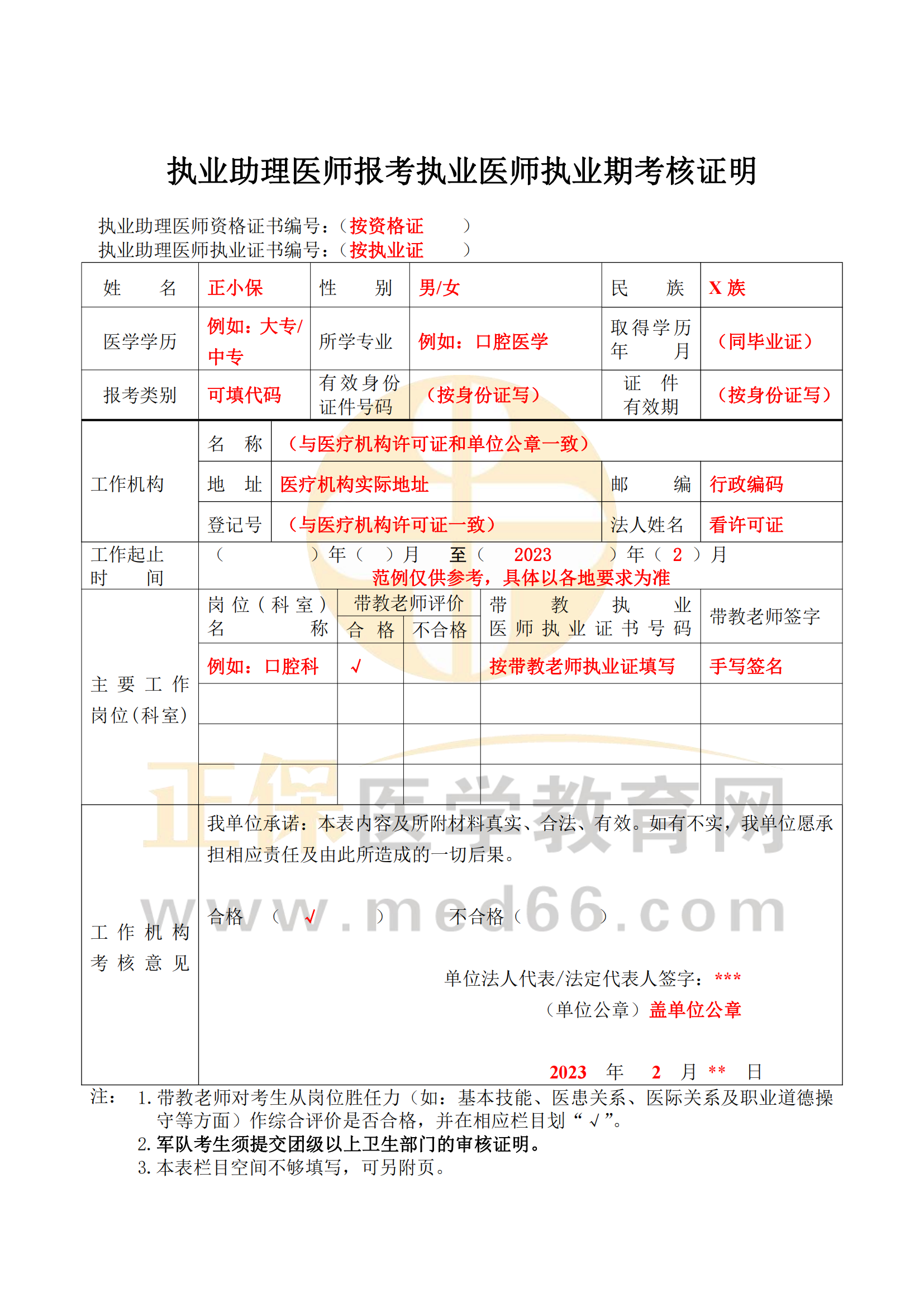 附件下載:執(zhí)業(yè)助理醫(yī)師報考執(zhí)業(yè)醫(yī)師執(zhí)業(yè)期考核證明(2023版)填寫范例