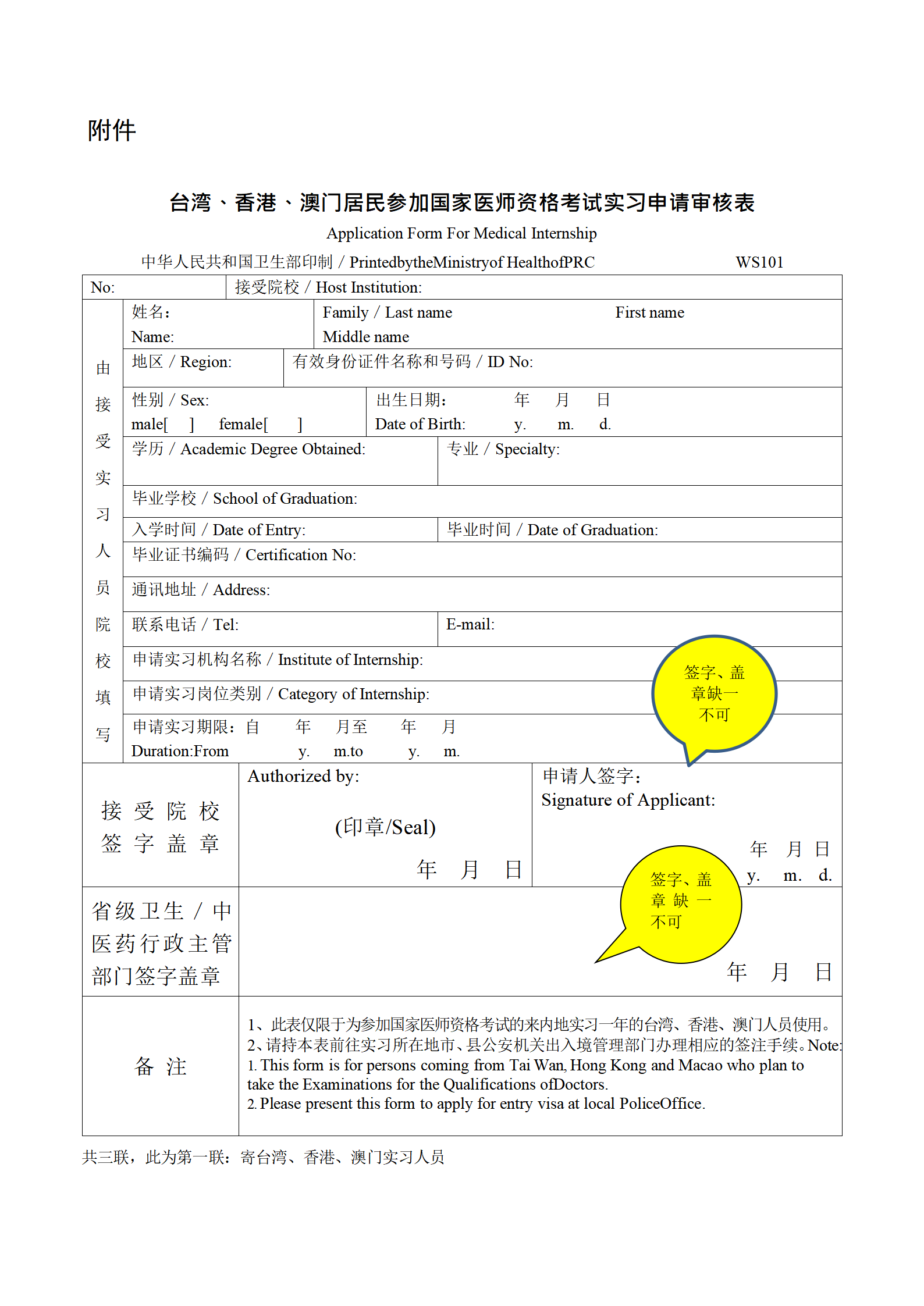 臺灣、香港、澳門居民參加國家醫(yī)師資格考試實(shí)習(xí)申請審核表填寫說明_01