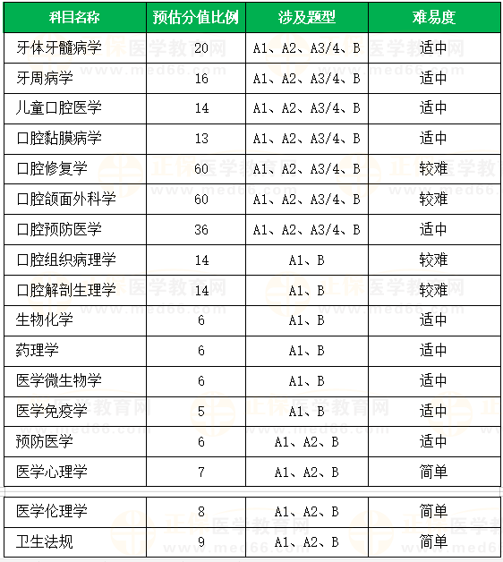 2.口腔預(yù)防在近幾年的考試占比逐年增加,今年在第一單元考試中,占比增加更明顯。需加強對口腔預(yù)防的重視。題目難度不大,但是考點很細,需加強對細節(jié)內(nèi)容的把控。