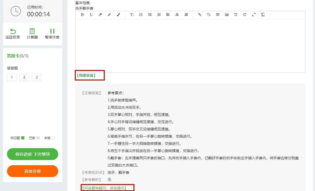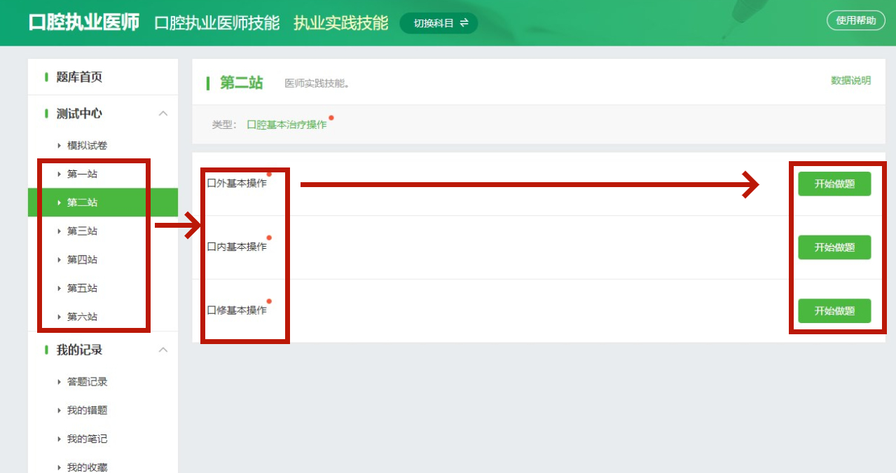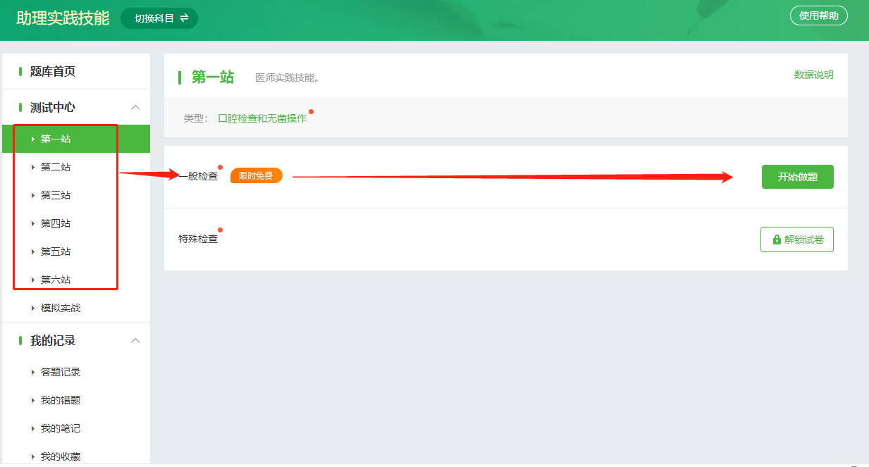 各類別各考站的內(nèi)容全面覆蓋,真實(shí)還原「技能考場(chǎng)」,提前感受考試內(nèi)容,輕松記住所有采分點(diǎn)!進(jìn)入題庫后,可以進(jìn)行分站式演練,考生可以根據(jù)自己的情況進(jìn)行有針對(duì)性的訓(xùn)練。技能操作練習(xí)題將關(guān)鍵得分點(diǎn)、操作易錯(cuò)誤區(qū)、需要注意的事項(xiàng)等都進(jìn)行了標(biāo)注,對(duì)考生進(jìn)行測(cè)驗(yàn),以加深印象,鎖定分?jǐn)?shù)。