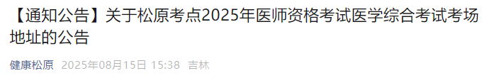 吉林松原2025年醫(yī)師資格綜合筆試考生速看考場安排!以下為松原考點官方通知,請相關(guān)考生按時打印準(zhǔn)考證,提前確認(rèn)好考場安排及考生須知!