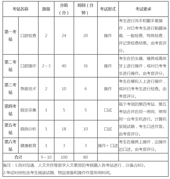 (1)考試內(nèi)容:口腔操作。