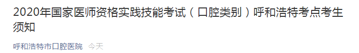 呼和浩特市2020口腔助理醫(yī)師實踐技能考試時間/考試基地/考生須知,為幫助呼和浩特市新城區(qū)/回民區(qū)/玉泉區(qū)/賽罕區(qū)/土默特左旗/托克托縣/和林格爾縣/清水河縣/武川縣等地考生了解,醫(yī)學教育網編輯整理具體通知內容如下:
