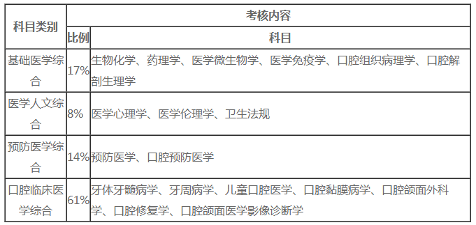 口腔執(zhí)業(yè)助理醫(yī)師資格綜合筆試考察科目分值占比