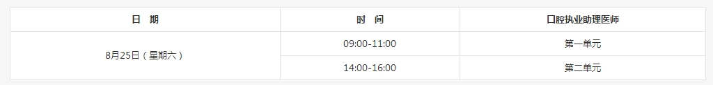 目前2019年口腔助理醫(yī)師考試時(shí)間尚未公布,參考2018年口腔助理醫(yī)師考試時(shí)間: