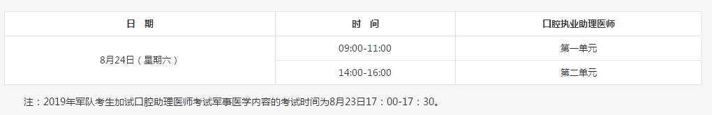 2019年口腔助理醫(yī)師醫(yī)學(xué)綜合筆試全國統(tǒng)一考試時間為8月24日: