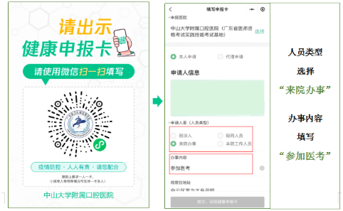2.考生應(yīng)出示有關(guān)身份證件(包括身份證、臨時身份證、軍官證或文職干部證等)及準(zhǔn)考證、我院健康申報卡(請?zhí)崆皰呙柘聢D申領(lǐng),當(dāng)日有效,健康申報卡會同時展示48小時內(nèi)核酸陰性結(jié)果、粵康碼、行程卡),在“考生報到處”報到。