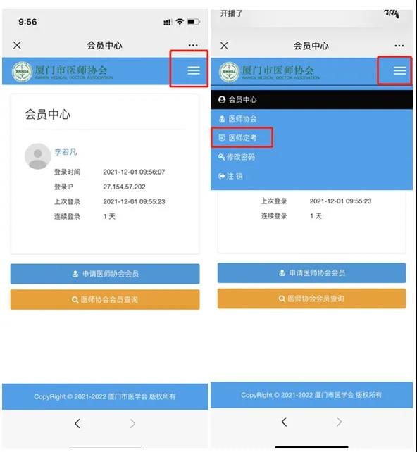 三、無需申請(qǐng)醫(yī)師協(xié)會(huì)會(huì)員,點(diǎn)擊右上角“三”——選擇“定期考核”進(jìn)入;