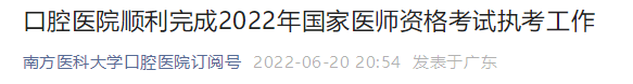 南方醫(yī)科大學(xué)口腔醫(yī)院順利完成2022年國(guó)家醫(yī)師資格考試執(zhí)考工作!相關(guān)信息醫(yī)學(xué)教育網(wǎng)編輯整理分享如下: