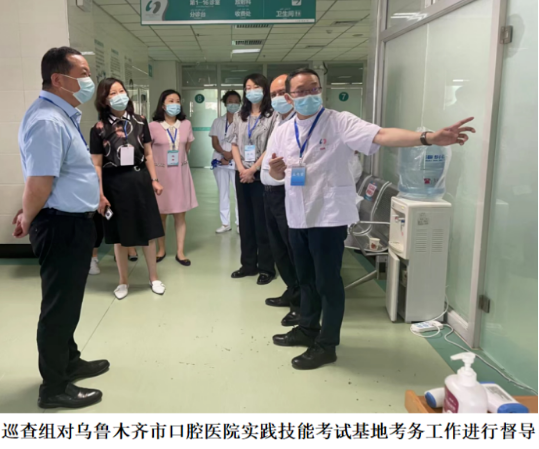6月18日——21日,在自治區(qū)衛(wèi)生健康委醫(yī)學(xué)考試中心、烏魯木齊市衛(wèi)生健康服務(wù)指導(dǎo)管理中心、烏魯木齊市衛(wèi)生健康委的統(tǒng)一部署下,我院順利完成2022年度國(guó)家口腔醫(yī)師資格實(shí)踐技能考試工作??荚嚻陂g,自治區(qū)衛(wèi)生健康委會(huì)黨組成員、自治區(qū)人民醫(yī)院黨委書(shū)記、副院長(zhǎng)馮東,自治區(qū)醫(yī)療衛(wèi)生服務(wù)管理指導(dǎo)中心副書(shū)記、主任玉山·斯德克,自治區(qū)衛(wèi)健委中醫(yī)處副處長(zhǎng)紀(jì)蓓,自治區(qū)醫(yī)療衛(wèi)生服務(wù)管理指導(dǎo)中心考試中心主任阿依努爾·阿不都熱依木及烏魯木齊市衛(wèi)生健康委黨組成員、副主任常建梅一行巡查了我院溫泉門(mén)診部國(guó)家醫(yī)師資格考試實(shí)踐技能考試基地(口腔類別)組織實(shí)施情況,對(duì)考試流程、考務(wù)管理、防控舉措以及執(zhí)考等情況進(jìn)行了指導(dǎo),并對(duì)考試基地的工作部署安排、精細(xì)化管理、疫情防控措施及緊急預(yù)案等給與了充分肯定。