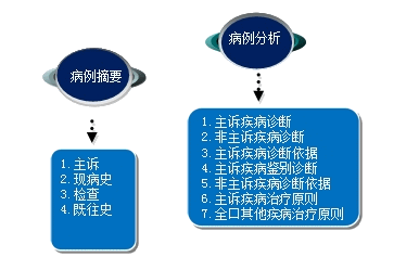模擬口腔疾病的標(biāo)準(zhǔn)化病例,每個(gè)病例至少包括2~3種疾病。病例分析包括診斷、鑒別診斷及其依據(jù)和治療設(shè)計(jì)。