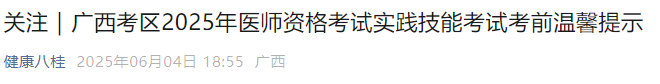 廣西2025年口腔助理醫(yī)師實踐技能考試基地公布,考生速看!以下為廣西考區(qū)官方發(fā)布的2025年醫(yī)師資格實踐技能考試考前注意事項,請相關(guān)考生及時查看。