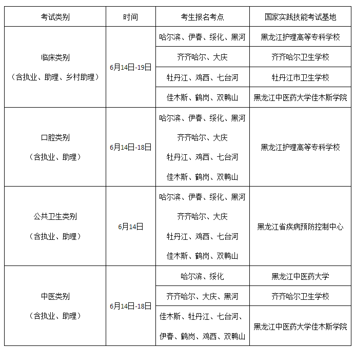 根據(jù)國家醫(yī)師資格考試工作總體安排,黑龍江省2025年醫(yī)師資格考試實踐技能考試將于2025年6月14日至19日舉行,現(xiàn)就有關(guān)事宜公告如下。