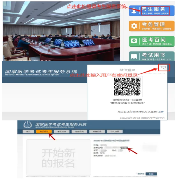 廣東省各位考生可于6月6日19時(shí)起,登錄國(guó)家醫(yī)學(xué)考試網(wǎng)(https://www.nmec.org.cn/),進(jìn)入“考生服務(wù)”,掃描二維碼或輸入用戶名和密碼,進(jìn)入系統(tǒng)自行打印準(zhǔn)考證,考生的具體考試時(shí)間、地點(diǎn)以準(zhǔn)考證為準(zhǔn)。
