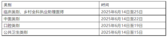 (二)關(guān)注各類別考試時(shí)間。2025年各類別實(shí)踐技能考試時(shí)間總體安排如下,請(qǐng)考生及時(shí)查看各考區(qū)考點(diǎn)的具體安排,按準(zhǔn)考證上的時(shí)間與地點(diǎn)參加考試,千萬(wàn)不要錯(cuò)過(guò)考試時(shí)間。