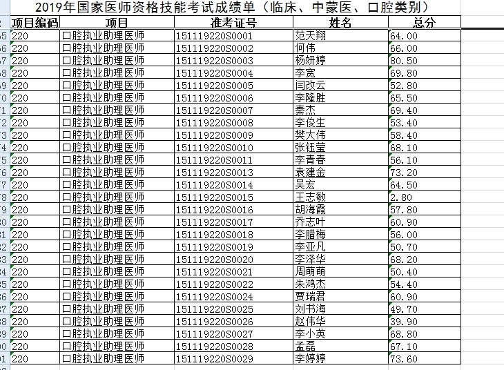 2019年國家實(shí)踐技能考試口腔(1)(錫盟考點(diǎn))考生成績表(點(diǎn)擊下載)