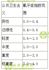 31.Dean規(guī)定的社區(qū)氟牙癥指數(shù)范圍在2.0~3.0公共衛(wèi)生含義是