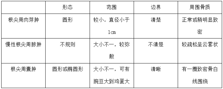 三種骨破壞病變的慢性根尖周炎的X線影像表現(xiàn)